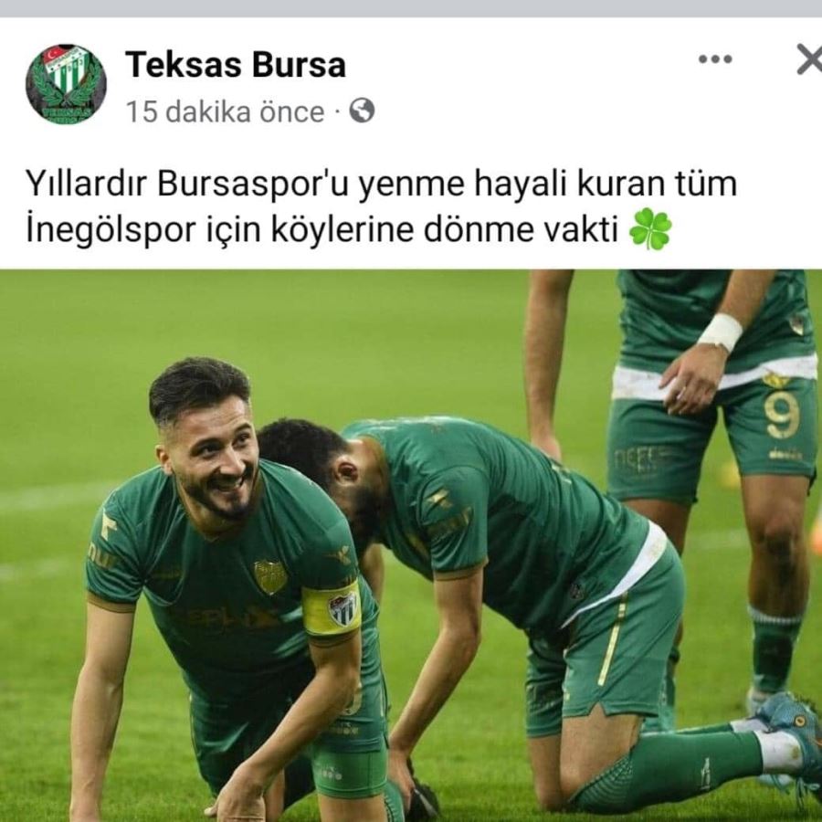 TFF 2. Lig Beyaz Grup’ta mücadele eden İnegölspor, Bursaspor’un konuğu oldu. Bordo Beyazlı takım müsabakadan 2-1 mağlup ayrılırken, Bursaspor taraftarı sosyal medya üzerinden İnegöllüleri aşağılayıcı paylaşımlar yaparak, “Köylerine dönme vakti” ifadelerini kullandı. Yapılan bu paylaşım büyük tepki toplarken İnegöllü iş adamı Aptullah Ezim, “20 Yıldır sizi o köylüler güdüyor” dedi.