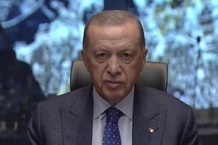 Cumhurbaşkanı Erdoğan, Devlet Bilgi Koordinasyon Merkezi'nde Kahramanmaraş merkezli depremlere ilişkin açıklamalarda bulunuyor.