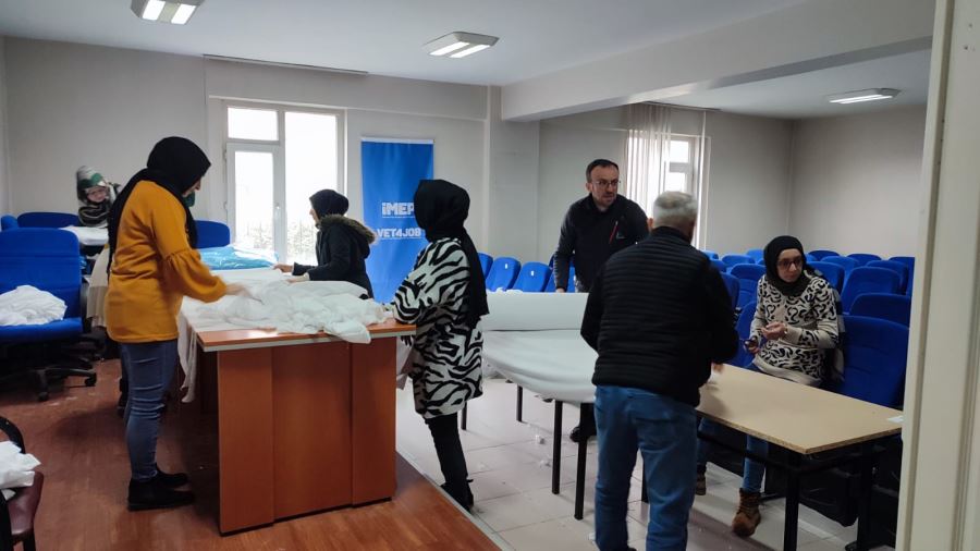 Kahramanmaraş merkezli depremde 20 bine yakın kişi hayatını yitirdi. Ölü sayısı ne yazık ki artarken; İnegöl’de bulunan 11 esnaf odasının çalışanları bölgeye gönderilmek üzere kefen hazırlıyor. Bir hayırsever tarafından sağlanan kefen kumaşlarını tek tek ayıran çalışanlar, poşetleyip deprem bölgesine gönderecek. Diyanetten görevlilerin tarif ettiği şekilde kumaşlar ayrılıyor, erkek, kadın ve çocuklara göre kesilip; tek tek poşetleniyor. İnegöl Berberler Odası Genel Sekreteri Mehmet Acar yaptığı açıklamada; “Binamızda bulunan esnaf odalarının genel sekreterleri, personelleri, kooperatifteki arkadaşlarımız, muhasebeci arkadaşlarımız hep beraber böyle bir hayır işine giriştik. Allah kabul etsin. Herkes kendince yardımlarını yapıyor. Ne yazık ki ölü sayısı artıyor. Orada kefen ihtiyacının doğacını düşünerek bir hayır severin gönderdiği kumaşları kesip biçiyoruz. Erkek, kadın ve çocuklara göre tasnif ediyoruz ve poşetliyoruz. Sonra da yardım bölgesine göndereceğiz “dedi.
