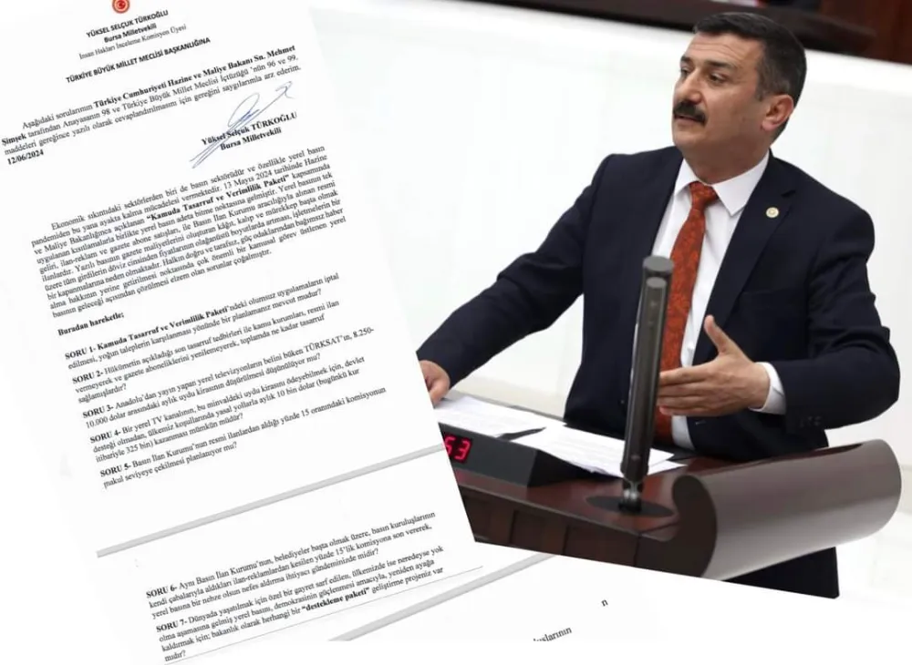 -İYİ Parti Bursa Milletvekili Selçuk Türkoğlu, yerel basının sorunlarını TBMM gündemine taşıdı. Türkoğlu, “Bu memleketin ekonomisi, kamu kurumları, belediyeler vs. basına ilan-reklam verdi diye mi battı? Bu ülkenin kasaları, hazinesi; kamu kurumları gazetelere abone oldu diye mi boşaldı?” diye sordu.