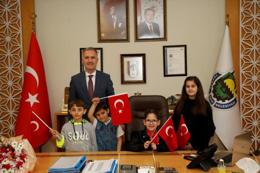 Makamını bir günlüğüne Pelin Yıldız’a devreden Belediye Başkanı Alper Taban ise “Eminim ki Başkanımız çok güzel işler başaracak. Bu vesileyle Başkanımız nezdinde tüm dünya çocuklarının 23 Nisan Ulusal Egemenlik ve Çocuk Bayramı’nı da kutluyorum. Nice bayramlara erişilmesini temenni ediyorum” diye konuştu.