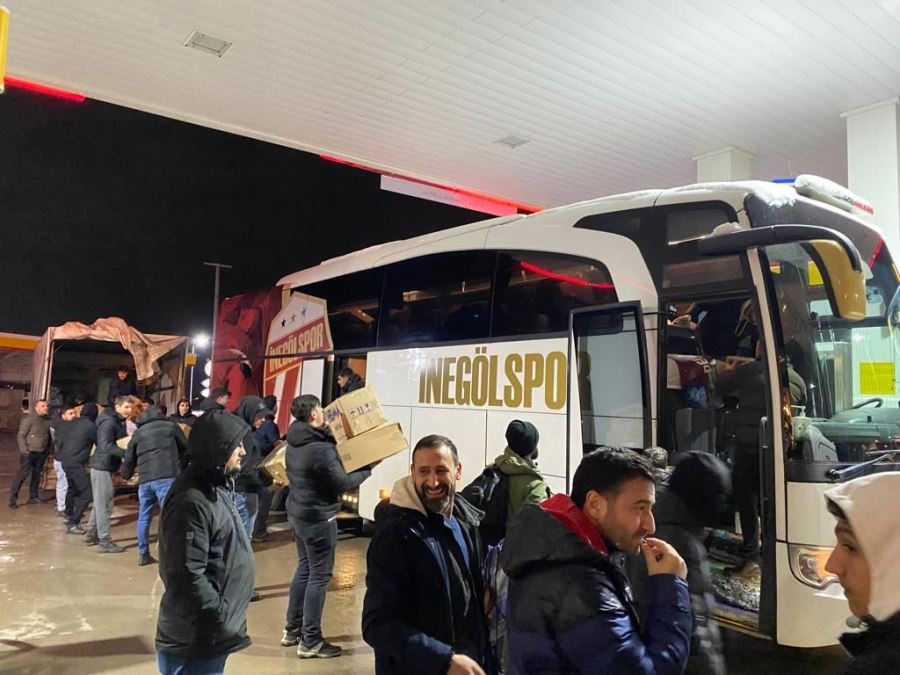 İnegölspor’dan yapılan açıklamaya göre İnegölspor Yönetim Kurulu Üyeleri tarafından düzenlenen organizasyonla toplanan yardım paketleri, takım otobüsüne yerleştirildi. Takım otobüsündeki yardım paketleri depremzedelerle buluşturulmasının ardından, depremzedeleri takım otobüsü ile İnegöl’e getirileceği açıklandı. Konuya ilişkin yapılan açıklamada şu ifadelere yer verildi: “İnegölspor yönetim kurulu olarak hazırladığımız yardım paketleri takım otobüsümüze yüklenerek yola çıktı. Otobüsümüz aynı zamanda deprem bölgesindeki aileleri İnegöl'e getirecek. Paketlerin otobüse yüklenmesinde bizlere yardımcı olan Hamzabey Köyü gençlerimize de ayrıca teşekkür ederiz”