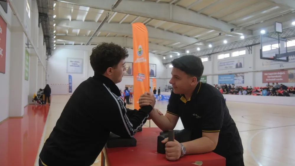 İlk günden itibaren büyük bir çekişmeye sahne olan 9. Okullar Arası Spor Festivalinde bugün 7’nci branş olan bilek güreşinde öğrenciler kıyasıya bir mücadele verdi. Akhisar Spor Salonunda sabah 10.00’da başlayan bilek güreşi müsabakaları tamamlandı. Küçükler, Yıldızlar, Gençler (A) ve Gençler (B) olmak üzere 4 ayrı kategoride gerçekleştirilen bilek güreşi müsabakalarına 20 okuldan toplam 147 sporcu katıldı.