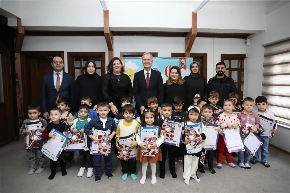 İnegöl Belediyesi Beşinci Mevsim Kreşinde eğitim alan öğrenciler için karne töreni düzenledi. Minik öğrenciler karnelerini Belediye Başkanı Alper Taban’dan aldı.