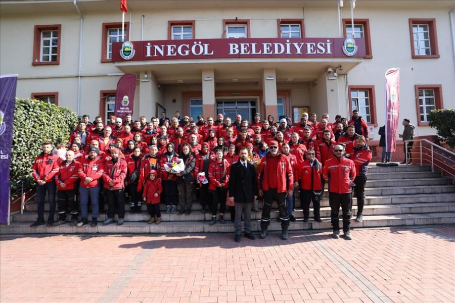 Karşılama sırasında kısa bir konuşma yaparak duygularını paylaşan İNDAK ekip sorumlusu Varol Yılmaz bölgede yaşadıklarını ve düşüncelerini paylaştı. Yaşanan afetin çok büyük bir afet olduğuna dikkat çeken Yılmaz, “Herkese çok teşekkür ediyorum. Bizler böyle karşılayarak onurlandırdınız. Yıllardır İnegöl’de afet bilincini oluşturmaya, arama-kurtarmanın önemini anlatmaya çalışıyoruz. Keşke bu acı olay yaşanmasaydı da bu farkındalığı daha önce hissetseydik, anlasaydık. Gerçekten yaşanan afet çok büyük bir afet. Geçmişte yaşanan afetler gibi lokal bir afet değil. Bir Van depremi, bir İzmir, Gölcük depremi gibi değil. Çok geniş bir alandaydı. İnşallah bundan sonra yaşanmasını umut etmiyoruz ama coğrafi olarak çok sıkıntılı bir bölgede yaşadığımızı unutmayalım. Hazırlıklarımızı daha da ilerletelim istiyoruz. Bir hayata dokunmak, bir yaşamın devamına vesile olmak çok güzel bir şey. Allah nasip etti 13 vatandaşımızı enkazdan çıkardık, hayata dönmesine vesile olduk. 99 vatandaşımızın naaşlarını çıkardık. Onları ailelerine teslim ettik. O da ayrı bir şey. İnsanlar umutla bekliyorlar. Dün umutların tükendiği 222. Saatte Melike İmamoğlu ablamızı canlı olarak çıkardık. Allah’a çok şükür. Rabbim bir daha böyle afetler yaşatmasın” dedi.