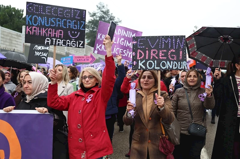 Nilüfer Belediyesi, Nilüfer Kent Konseyi ve Nilüfer Kadın Meclisi’nin, 8 Mart Dünya Emekçi Kadınlar Günü’nde ‘Karanlığa İnat Güneşi Doğuracağız’ sloganıyla organize ettiği etkinlikte, yüzlerce kadın yağmura aldırmadan sloganlar eşliğinde yürüdü.