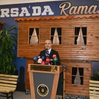 Ramazan ayı boyunca Çağrı Düğün Salonu ve Emir Sultan Meydan’ında vatandaşlara iftar menüsü verileceğini açıklayan Başkan Aktaş, “Ayrıca Emir Sultan Meydanı’nda kurulacak iftar çadırımızda cumayı cumartesiye ve cumartesiyi pazara bağlayan gecelerde yani haftasonları sahur ikramımız da olacak. 30 gün boyunca da yoğunluğun en fazla olduğu Mimar Sinan, Emek, Acemler, Şehreküstü, üniversite metro istasyonu çıkışları ile Ulu Camii, Orhangazi Camii arası, Şehir Hastanesi acil, Çekirge SGK acil, Dörtçelik Çocuk Hastanesi acil ve Şevket Yılmaz Hastanesi acil önlerinde iftara yetişemeyen veya gidemeyen vatandaşlarımız için bardak çorba, hurma, su ve roll ekmek şeklinde hızlı iftariyelik hizmeti sunacağız. Ayrıca bütün ilçelerimizde birer gün olmak üzere Ramazan’ın bereketini ve sevincini iftar programlarıyla paylaşacağız” diye konuştu.