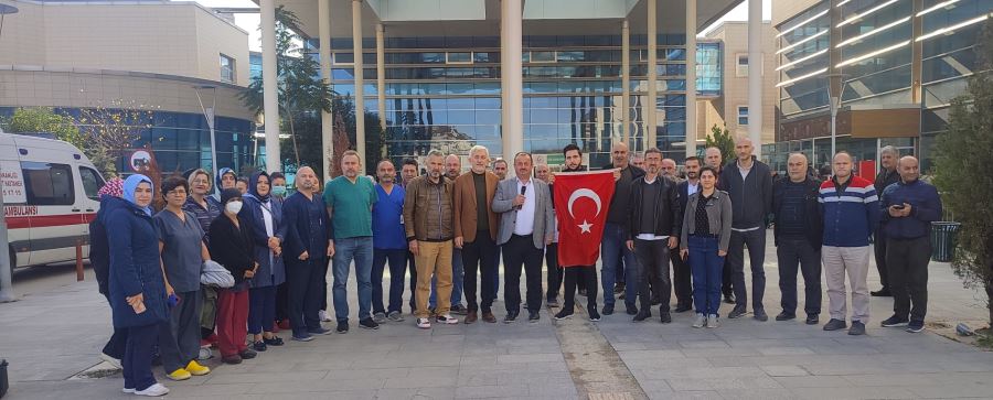 İnegöl Devlet Hastanesi önünde toplanan sağlık çalışanları TTB başkanı Şebnem Korur Fincacı’nın açıklamalarına tepki gösterdiler. Sağlık çalışanları adında açıklama yapan Bursa Sağlık Sen Başkan Yardımcısı Hüseyin Aydın şunları söyledi. “Türk Tabipler Birliği’nin (TTB) “kimyasal silah” yalanı, “sahibinin sesine” en güncel örnektir. Ve maalesef TTB bunu hep yapıyor. TTB; yüzbinlerce sağlık emekçisinin sorunlarına çözüm aramak yerine, terörün ve terör baronlarının sesi olmayı tercih etmektedir. Millet, vatan, bayrak sevdalısı sağlık çalışanlarının, dün olduğu gibi yarın da bu kirli sese karşı duracağından kimsenin şüphesi olmasın. Biz sağlık çalışanlarının durduğu yer milletimizin, ülkemizin ve bayrağımızın yanıdır. TTB’nin sesi gibi durduğu yer de bellidir. Tüm bu nedenlerle, TTB gece gündüz emek veren sağlık çalışanlarını asla ve kat’a temsil etmemektedir. Türk ordusu sivil hassasiyeti en yüksek orduların başında gelmektedir. Terörün ve terör örgütlerinin dil ve argümanlarını kullandığı ve terörle arasına mesafe koymadığı sürece de fedakar sağlık çalışanlarından ve halkımızdan hiçbir zaman destek göremeyecektir.”