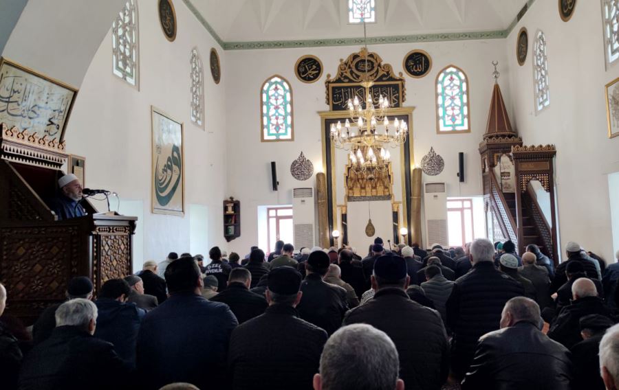 Tarihi İshakpaşa Camii’nde gerçekleştirilen 250 Hatmi Şerif’in duası merkezi sistemle ilçenin tamamındaki camilerde yapıldı.